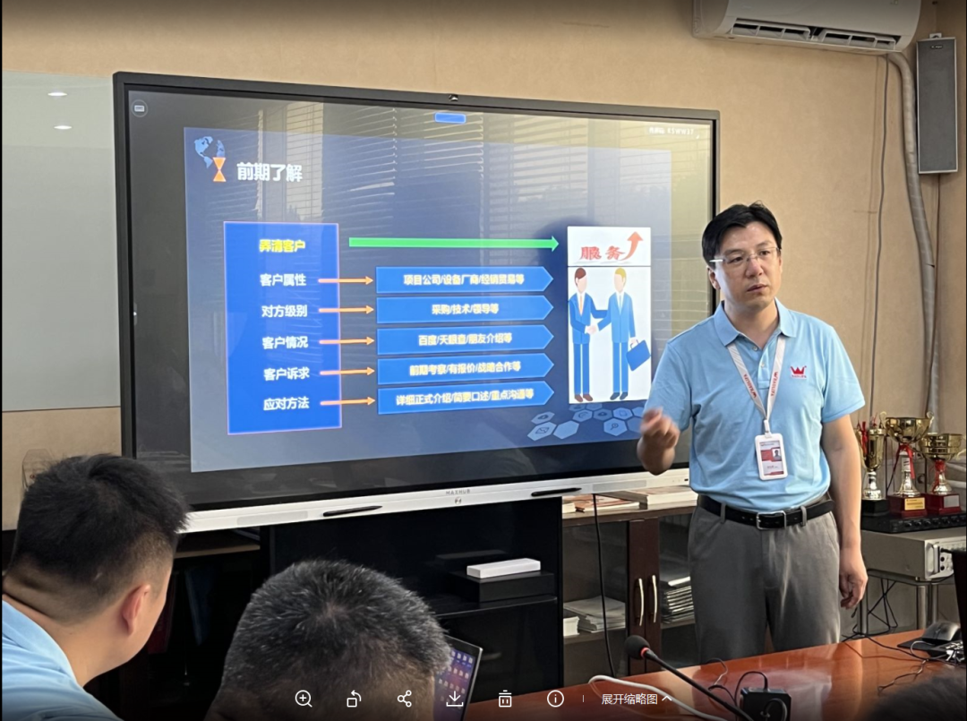 由各區(qū)域負(fù)責(zé)人扮演客戶角色,業(yè)務(wù)人員根據(jù)實(shí)際工作經(jīng)驗(yàn)圍繞市場(chǎng)開發(fā)、客戶服務(wù)、產(chǎn)品知識(shí)、售后資源等多個(gè)方面展開實(shí)訓(xùn),現(xiàn)場(chǎng)演示接觸客戶并開展相關(guān)交流的場(chǎng)景。